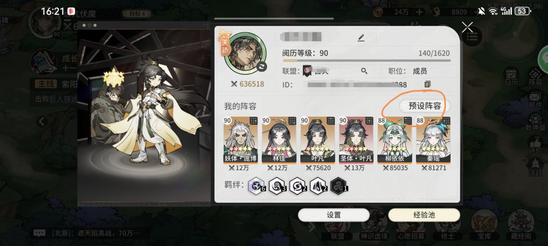首选我们点击头像,选择预设阵容
