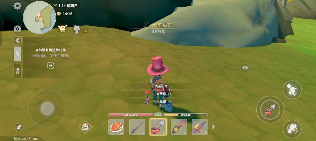 邮箱里收到三姐的信之后,到图中标记的地点,会看到一座五指山,用电钻钻开山后得到一个宝箱,里面是大圣三件套。