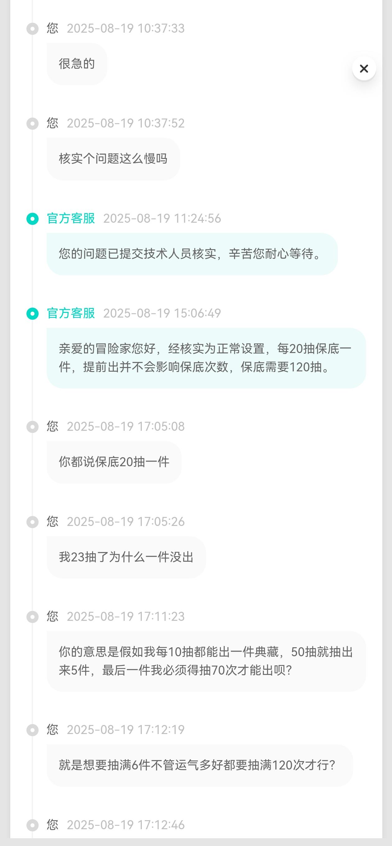 写着满20次必给一件典藏,最后22次都没出,这不是误导消费者吗,跟诱骗有什么区别?心动现在就靠骗钱生存了?