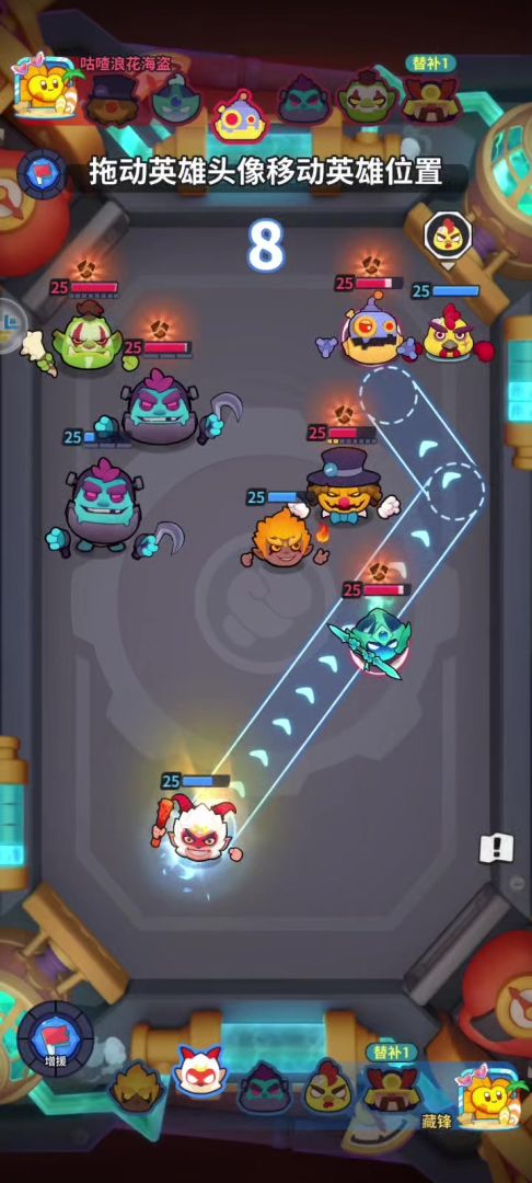 没4天赋的话也不要紧,如果火爆小子有好的路线和角度发起攻击,则小鸡作为发射器,把火爆小子撞进人堆,火爆小子没有好的进攻路线,就用小鸡尽量多碰撞敌方,小鸡碰一下顶两下,所以人物技能能量也是一下顶两下,配合钩子的话,轻轻松松一回合触发炸弹。