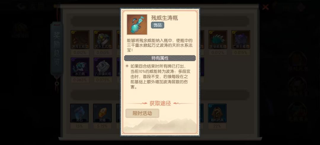 如果有多个残威生涛瓶或者千灵化浪佩,替换掉渊海玄威坠或者冥水玄武戒。