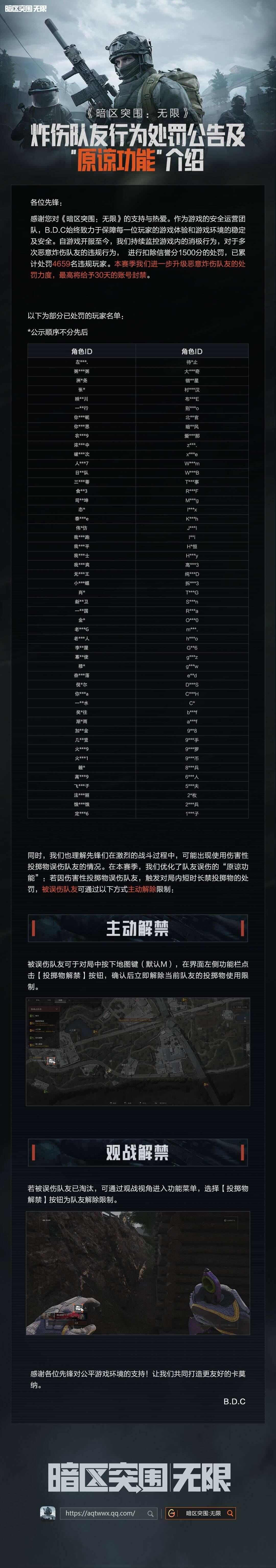 炸伤队友行为处罚公告及“原谅功能”介绍
