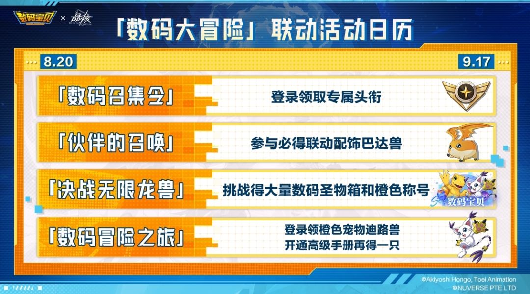 联动活动日历丨《数码宝贝大冒险》x《晶核》联动版本活动一览