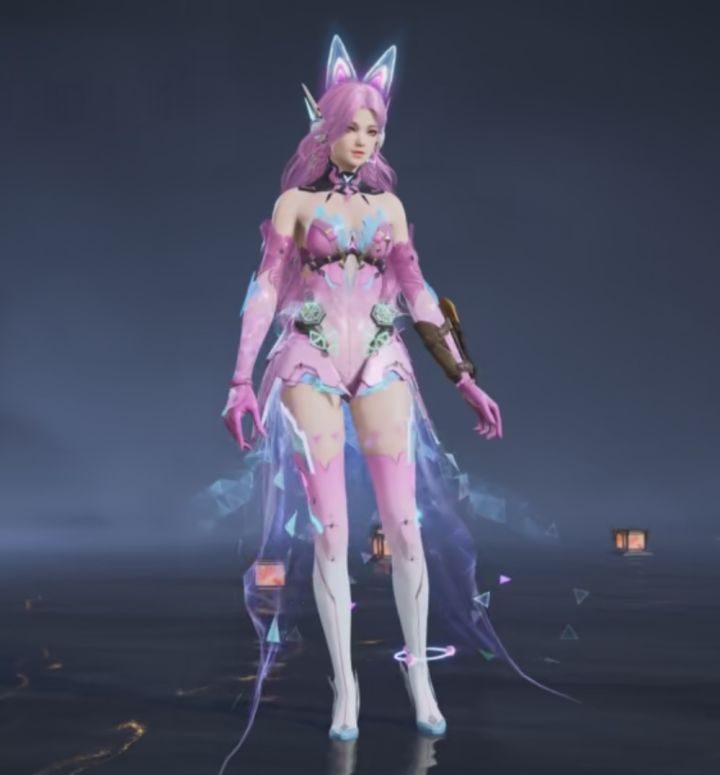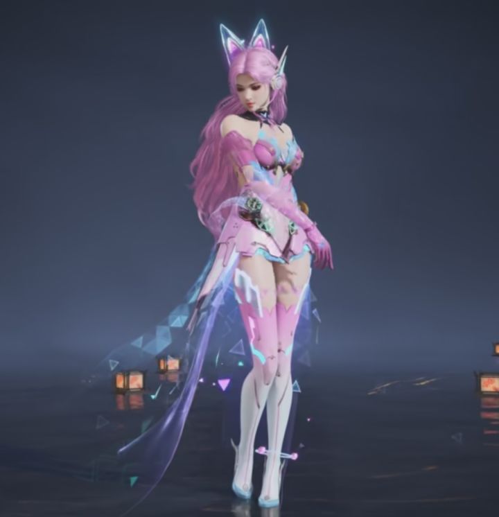 总体是粉蓝配色,以粉色为主体。还有特别挂饰耳朵和尾巴。