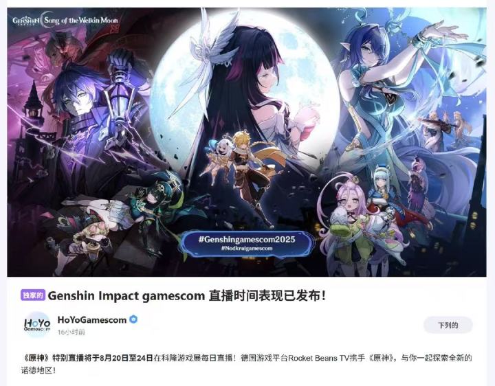 今年的科隆游戏展将于8月20日至24日在德国科隆展览中心举行,展会总面积达到23.3万平方米,比去年增加3000平米,创下历史新高。《原神》的特别直播活动将贯穿整个展会期间,德国游戏平台Rocket Beans TV将与《原神》团队合作,带领玩家探索全新的挪德卡莱地区,为玩家带来新的冒险体验。2025年科隆游戏展的投票将于8月20日至21日在欧洲中部夏令时间下午2点至晚上2点期间开放,玩家可通过指定平台参与投票,最终获奖结果将于8月22日下午3点在7号展厅科隆游戏展演播室的舞台上通过直播现场宣布。