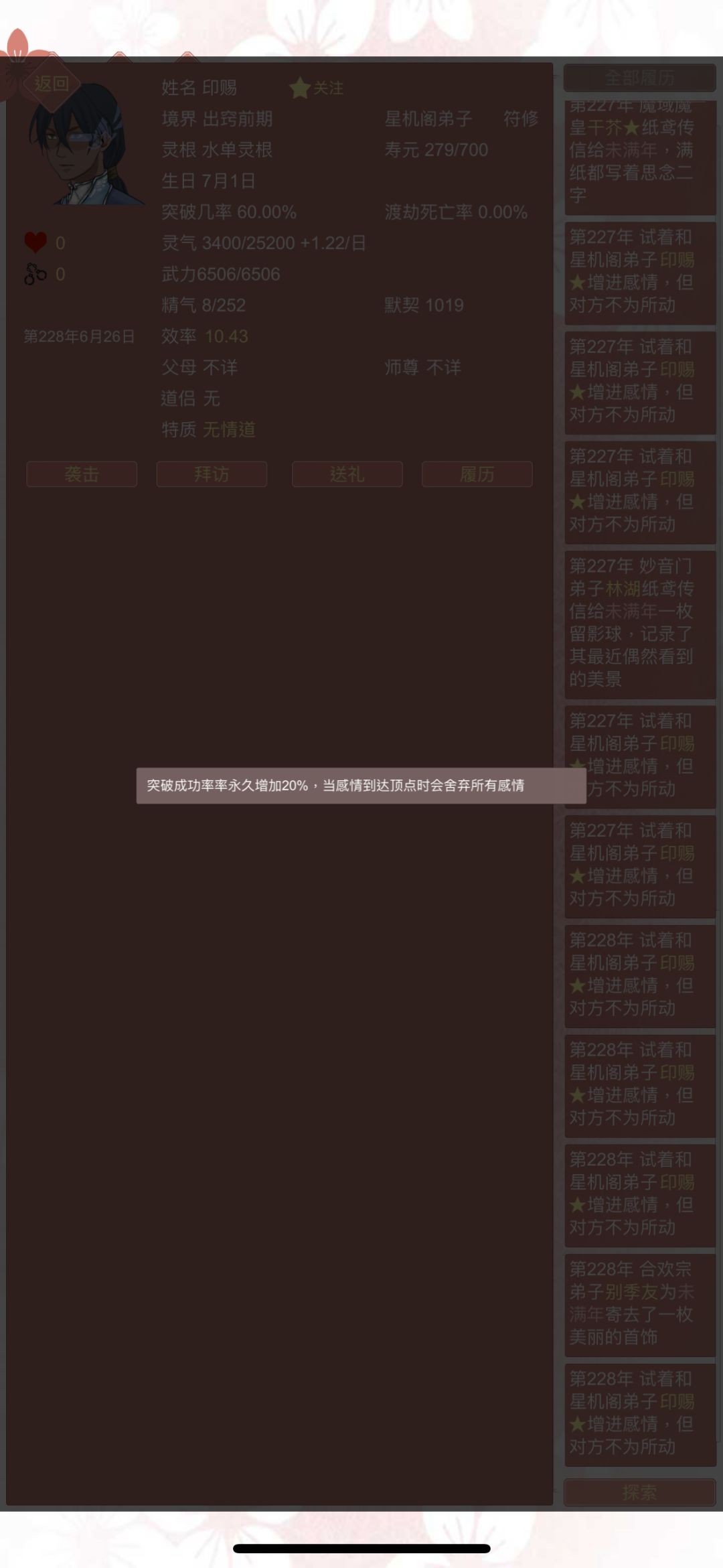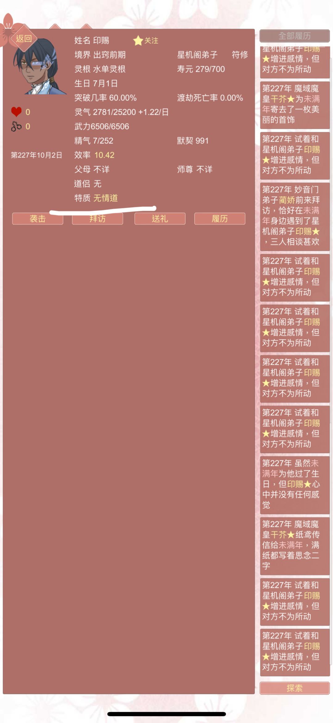 无情道的属性,让他一朝爱情到了峰值,所有的感情全部清零。