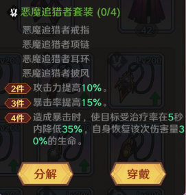② 恶魔追猎者套装,3件套效果提高暴击率,4件套效果暴击后减少目标治疗率5秒,并恢复该次伤害30%的生命值,功能性更强。