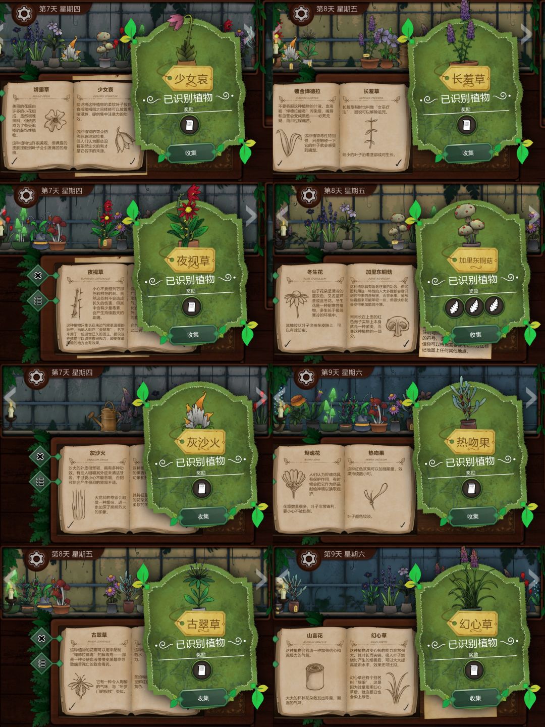 P5:少女哀、夜视草、灰沙火、古翠草、长羞草、加里东铜菇、热吻果、幻心草