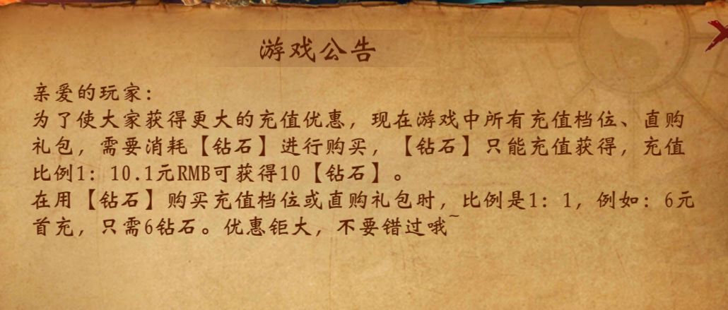 人民币充值钻石比例是 1:10 ,游戏内所有物品的标价格都等同于钻石数量。也就是和老版本相比,打1折。这个不像别的打折版本,先把游戏内价格膨胀十倍,再给你打1折,至少测试内容来看,没有多的套路,道具没有涨价。比如月卡以前30,现在3块钱就能买。