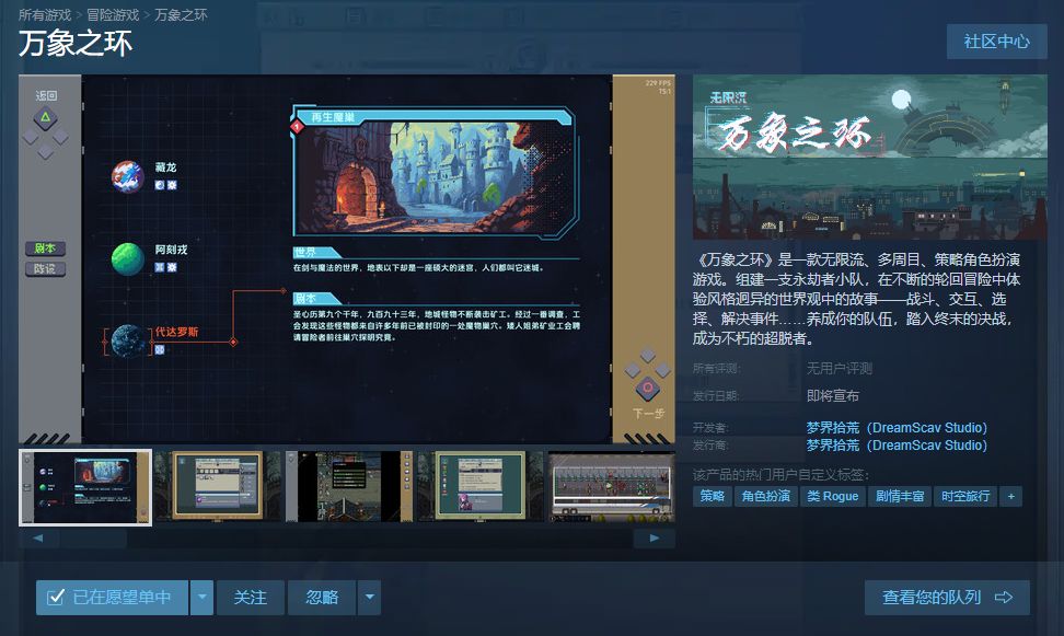 大家可以在steam中搜索万象之环进入我们的商店页