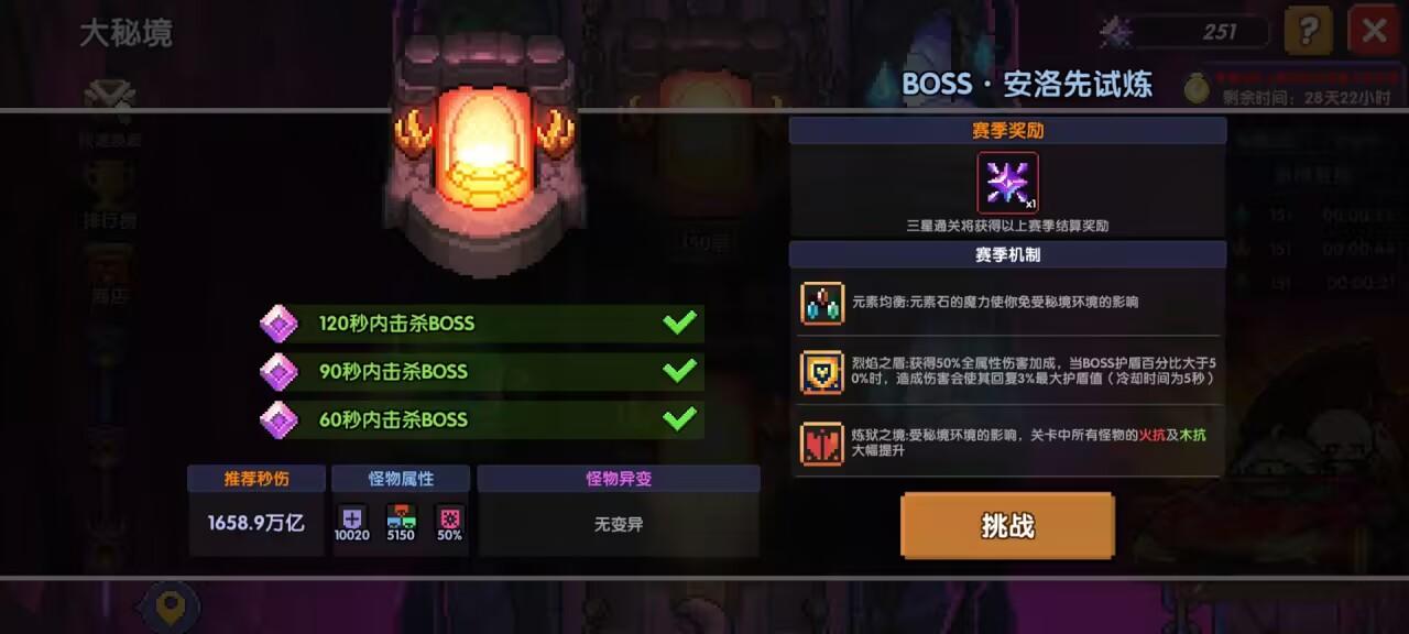 词条:开局获得50%全属性伤害加成,boss护盾大于50%时每5秒受伤回复3%护盾