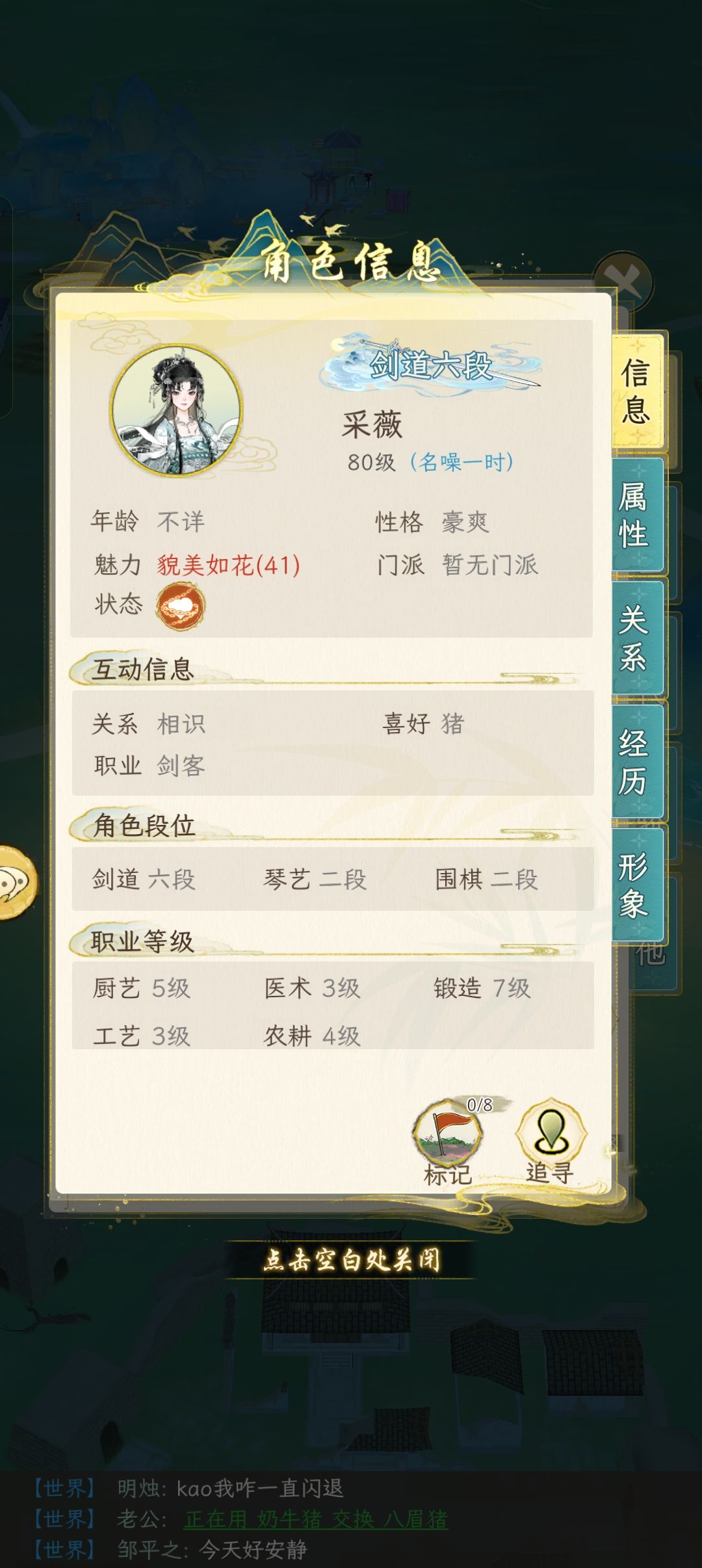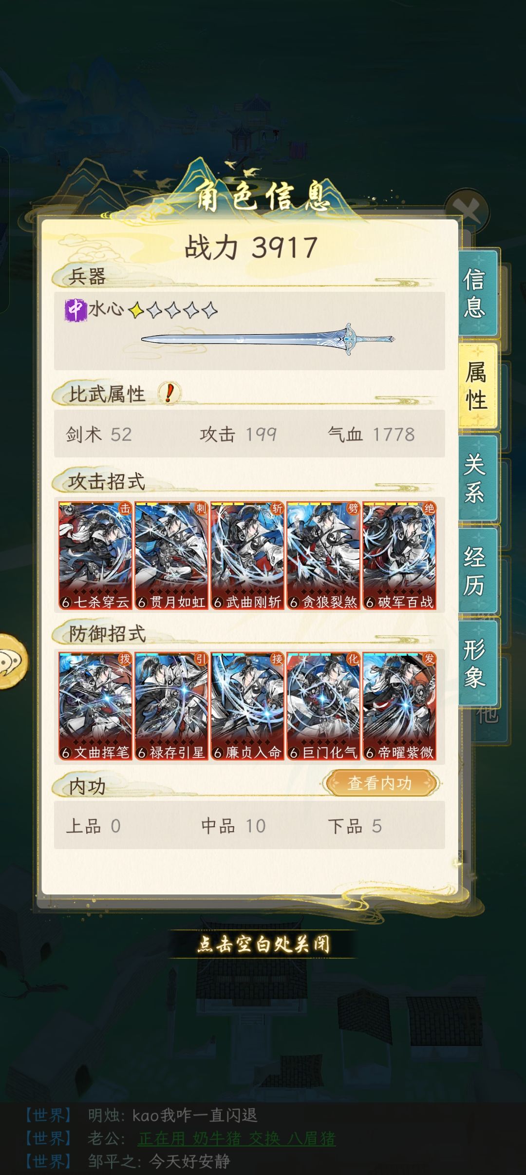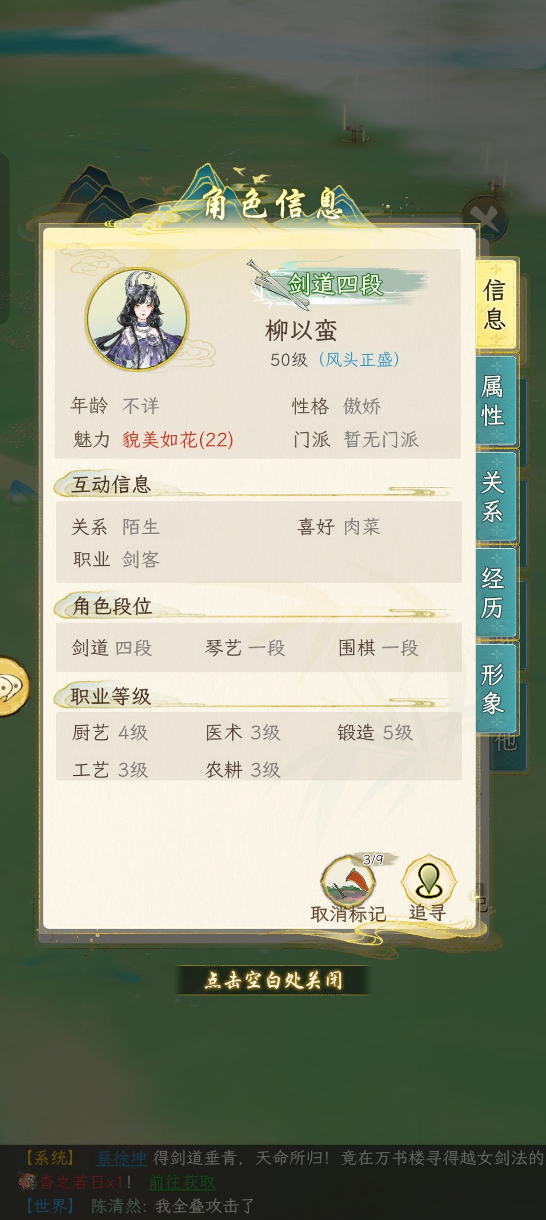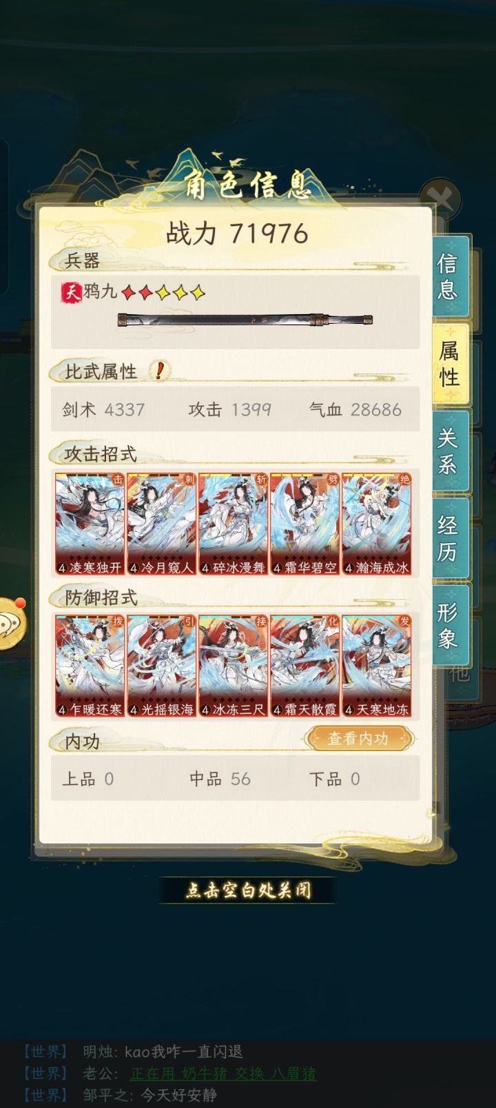 最后加一个评论推荐的杭州杨氏武馆的池雨凉,有一套好用的峨眉紫色内功可以学习。