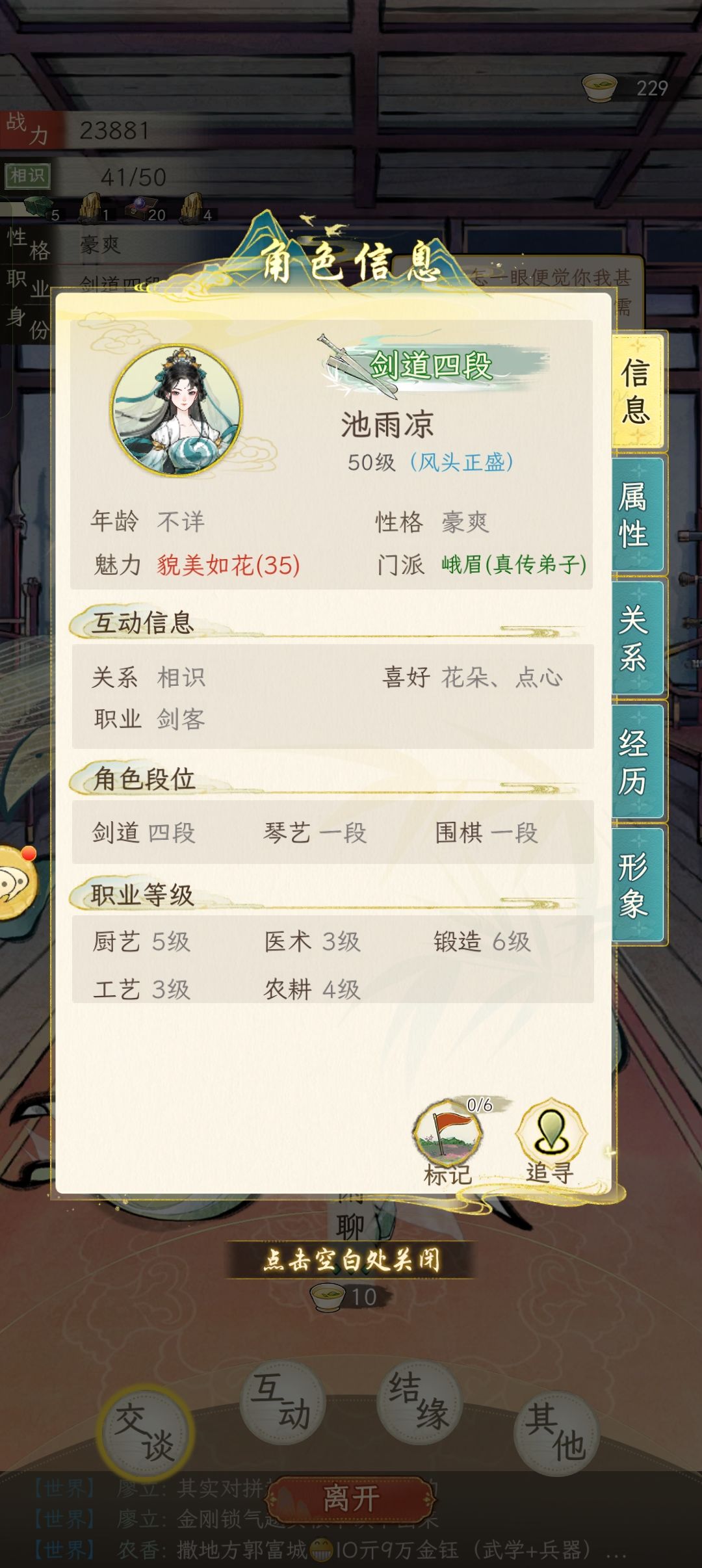 本文推荐的是好感1200即可拜师,拥有红色外功的平民师父。适合前期过渡或者想要特定技能又抽不出来的人拜师。后期可以退出师门重新拜师绝代天骄之类去学红色内功。
