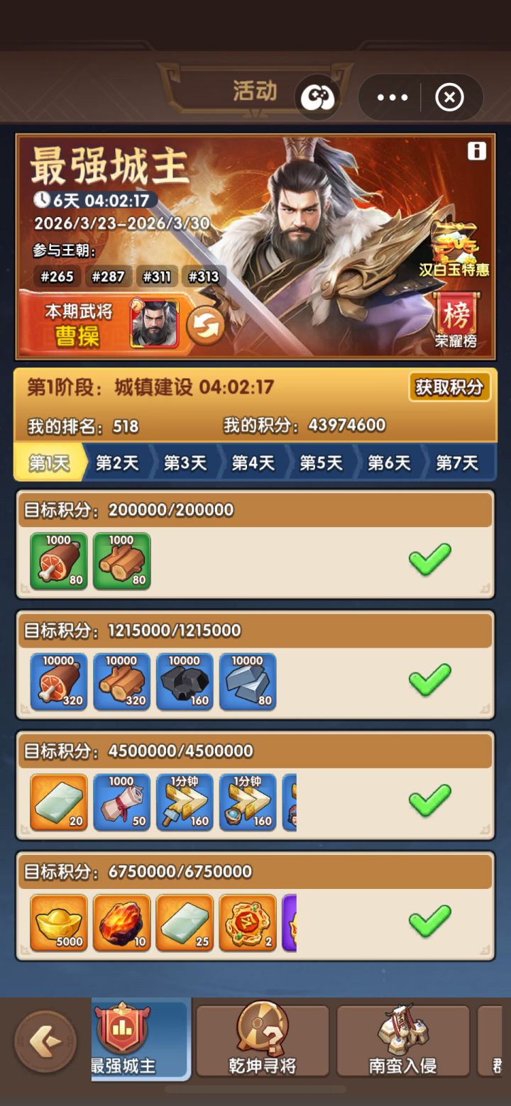 征服2 S7最强城主+ 同盟积分