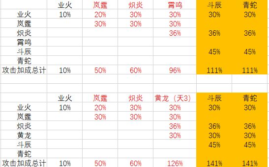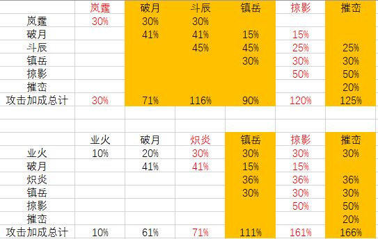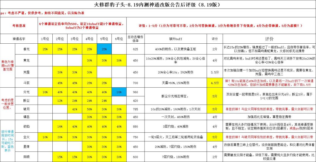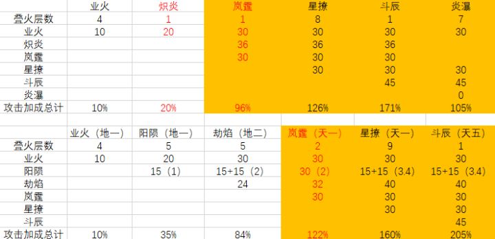 橙色表格标注的是主要输出神通