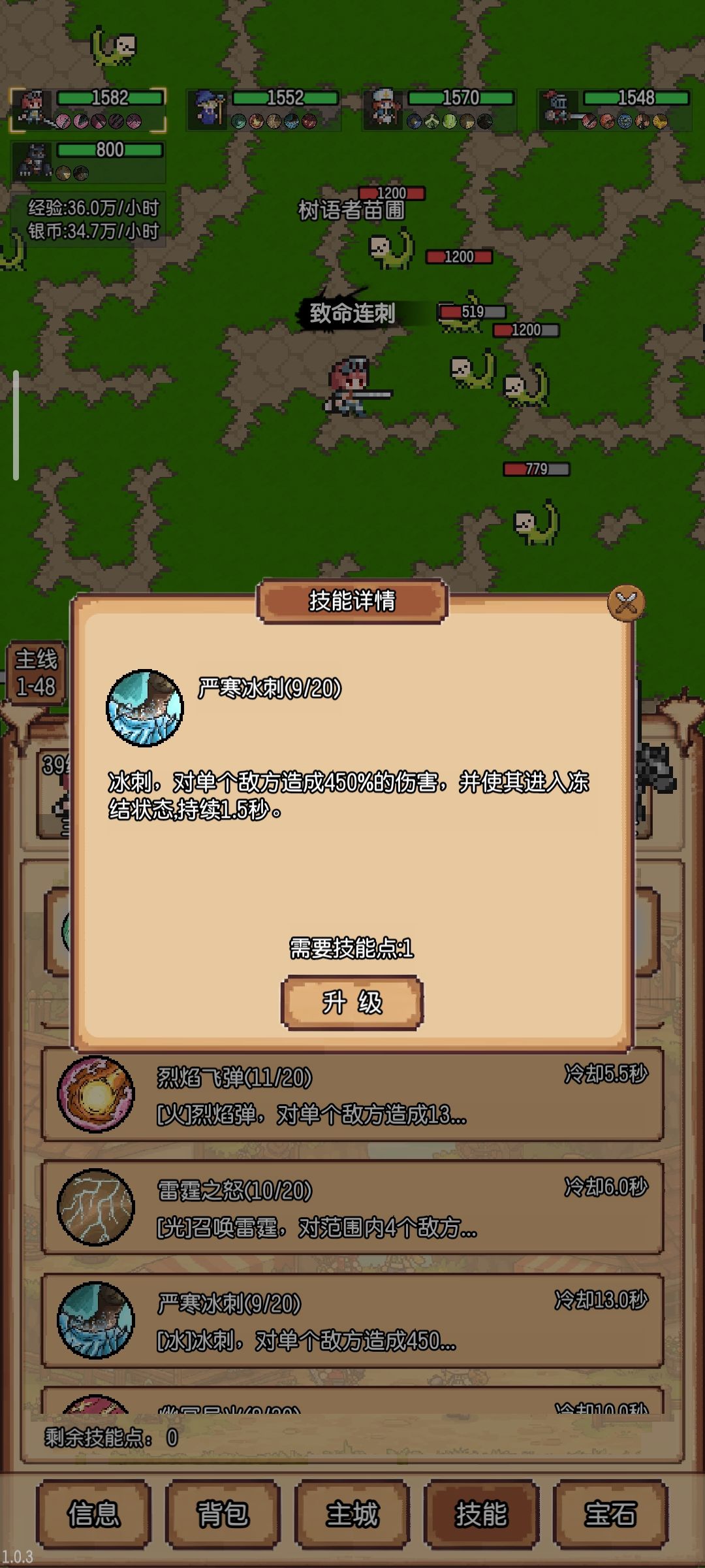 技能方面,主角强力一击5秒cd,300伤害,主力技能