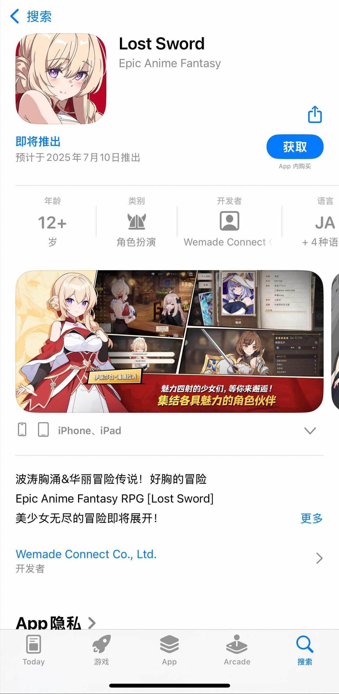 第三步:登录外区Apple ID后,搜索【Lost Sword】或者【遗忘之剑】即可预约下载游戏哦!(这里以新加坡地区AppS为例)