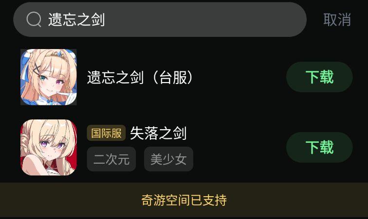 第三步:在奇游内搜索【遗忘之剑】即可下载游戏!