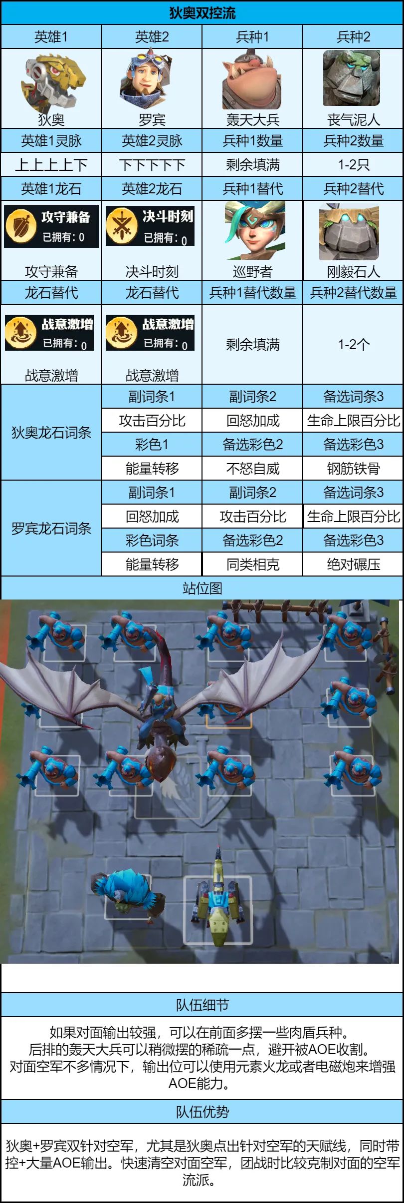 2、依然是需要空地混搭,面对敌方空军较多时,可以更多使用轰天大兵之类的对空组合。狄奥的加入也能更好针对空军