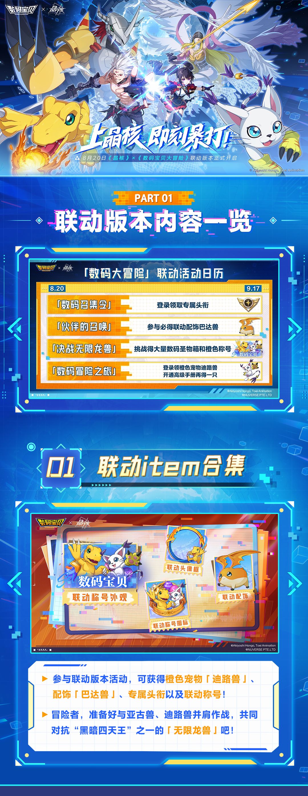《晶核》×《数码宝贝大冒险》联动版本今日正式上线!