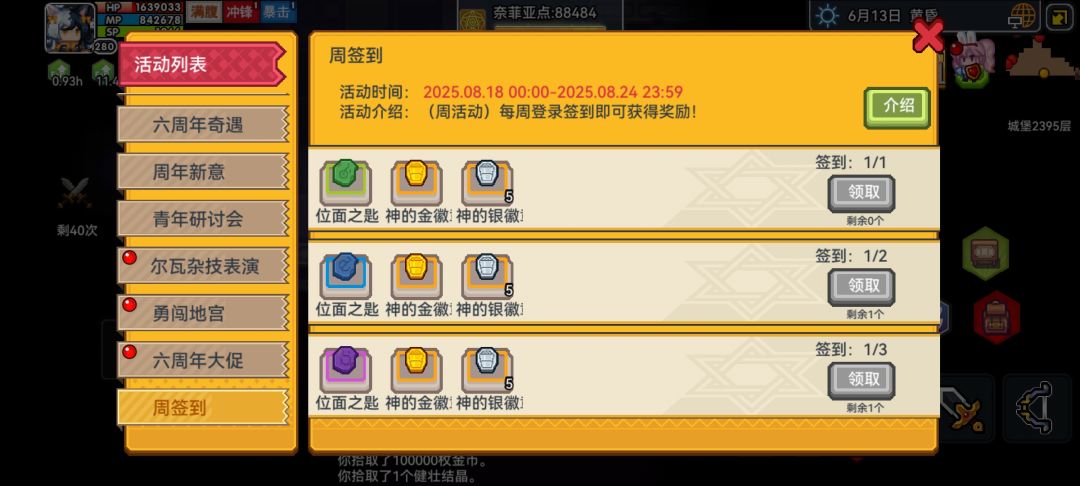 bug了,我周一周二的签到被吞了,只剩今天签到