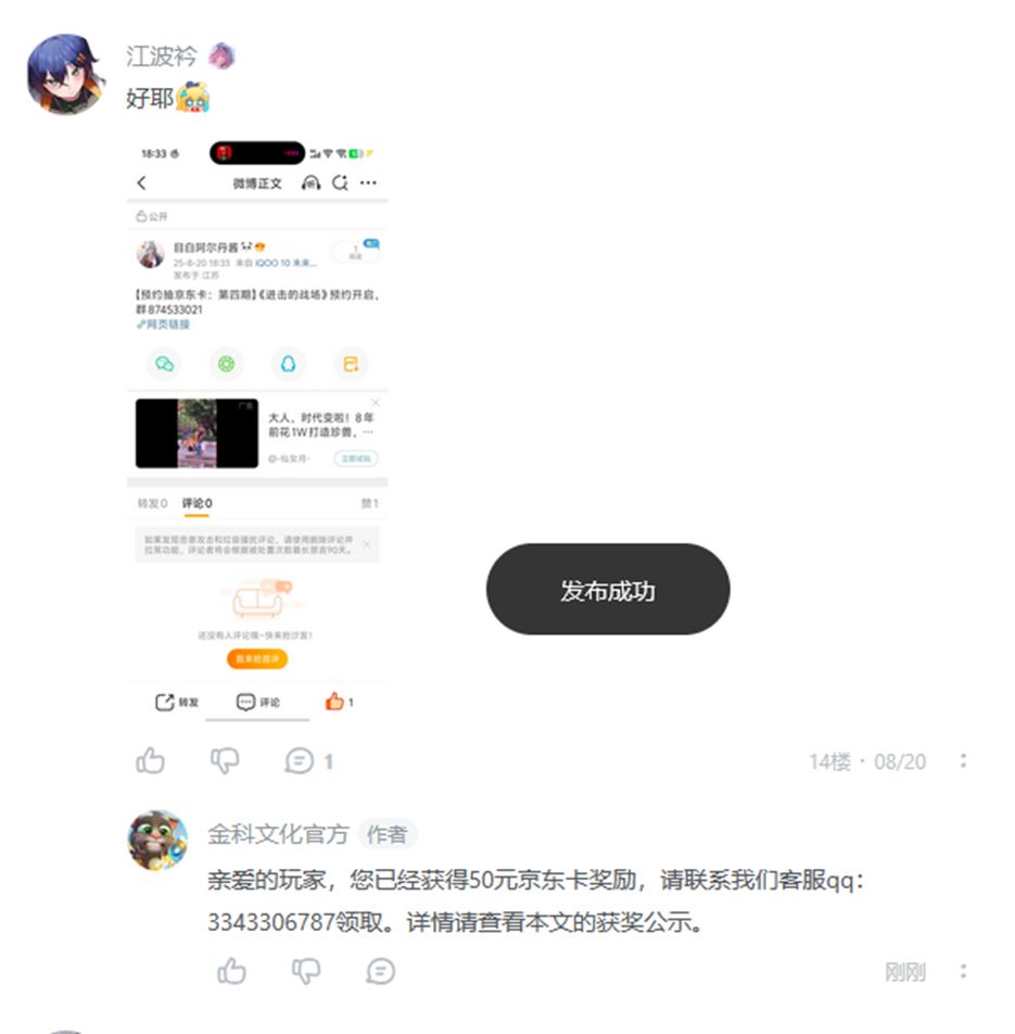 奖品:每位玩家获得50元京东卡x1(将挑选3位获奖玩家)