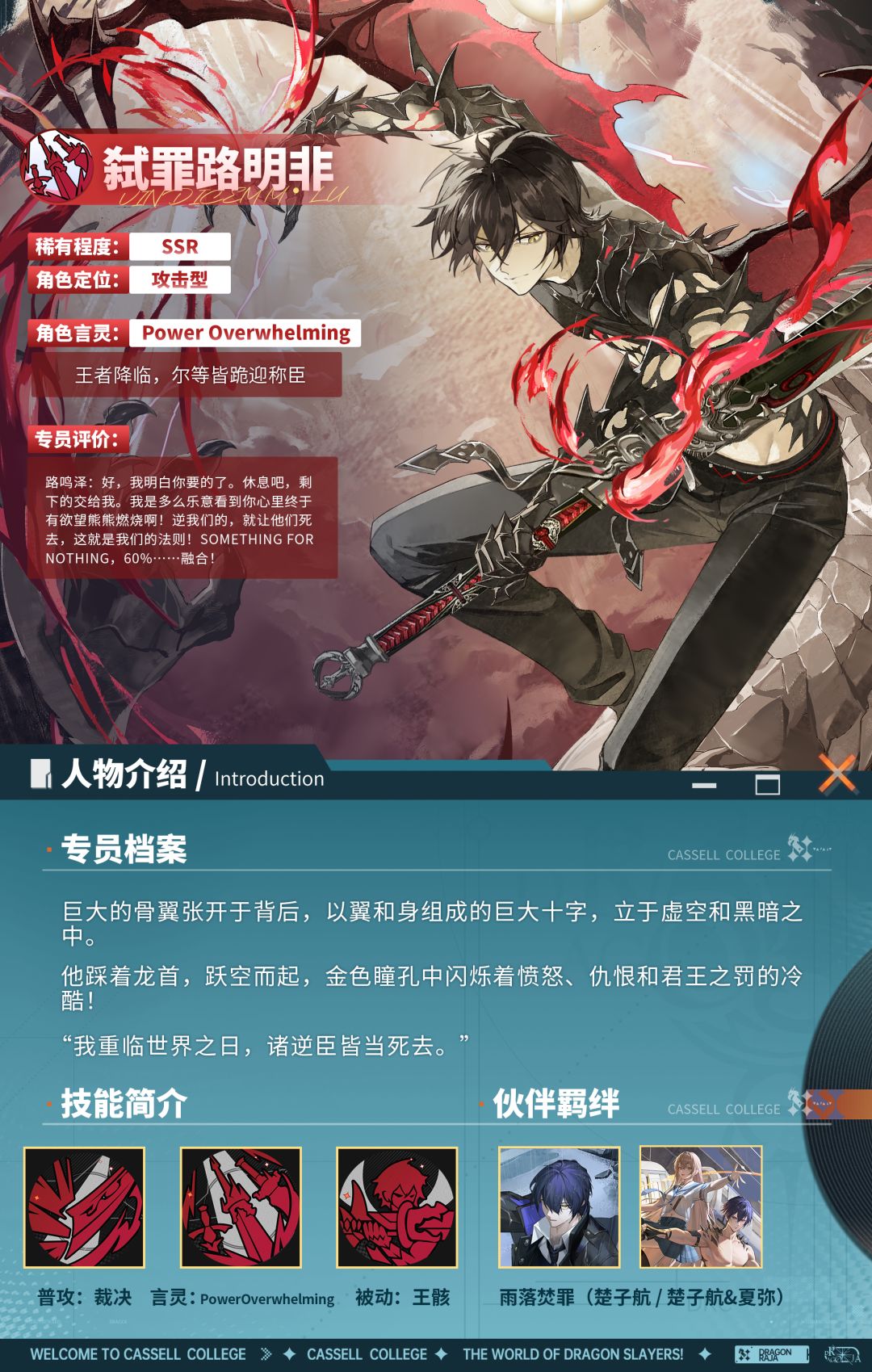 全新SSR伙伴弑罪路明非即将于8月23日正式上线!