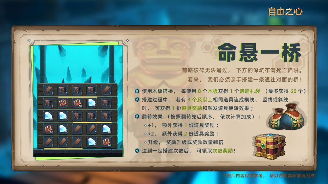 打开后可获得钻石、金币等道具,还有一定的概率获得活动道具“木板”。