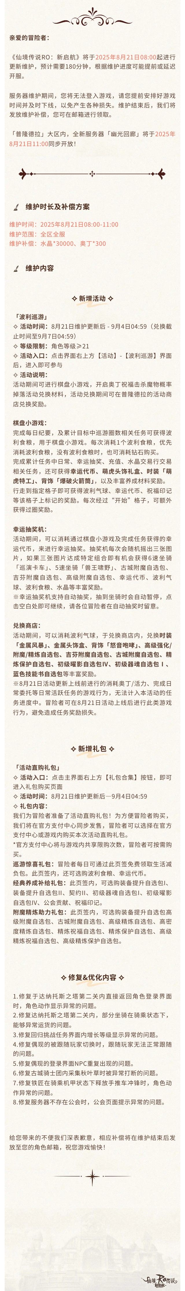 更新公告 | 8月21日更新维护公告