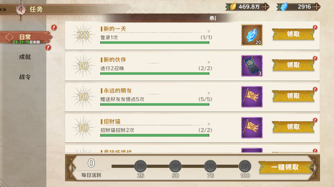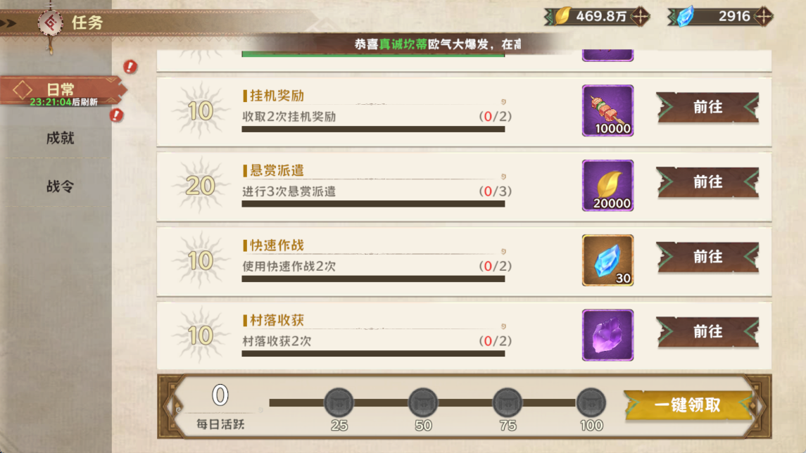 每日完成日常任务快速作战,可获得30钻石