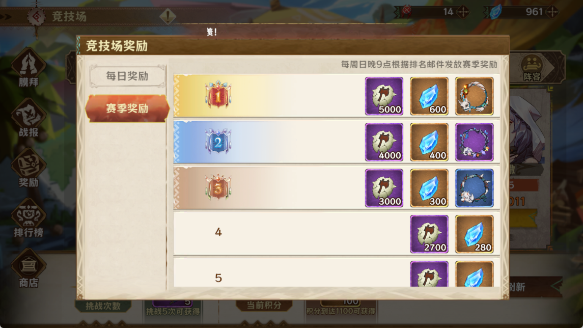 每日挑战冲排名,晚9点根据排名可获得10-200钻石,通过邮件形式发送