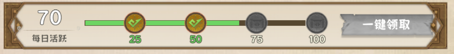 完成日常任务,积累活跃度达到25/50/75/100,可获得20+30+50+100,一共200钻石