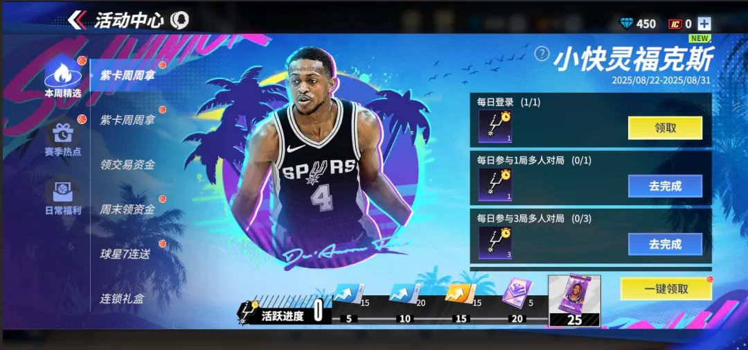 兄弟们!吉哥为大家带来了本周的球星&福利活动介绍!本周紫卡小快灵福克斯免费送!雄鹿双核卡池限时返场,领交易资金活动再度开启!