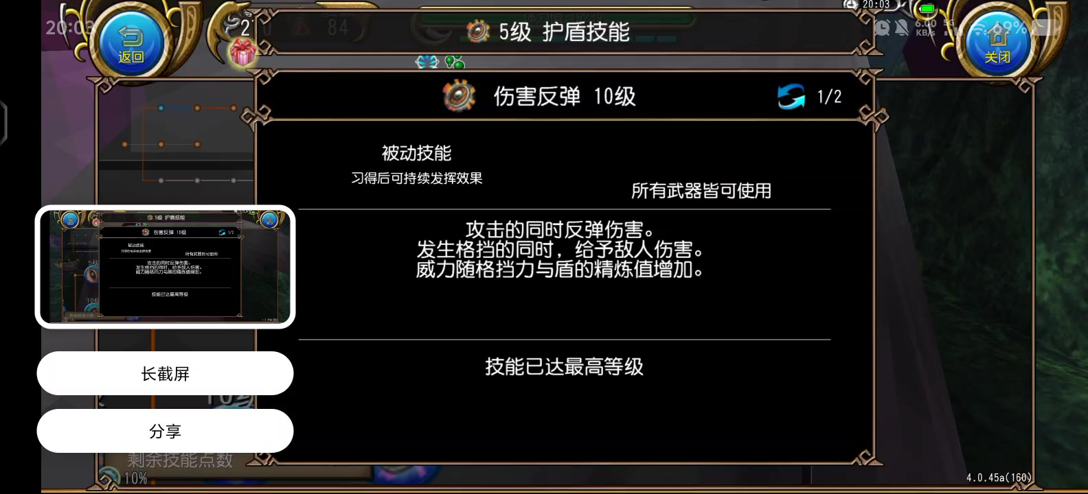 顺便测试了一下盾牌技能的伤害反弹(被动)。