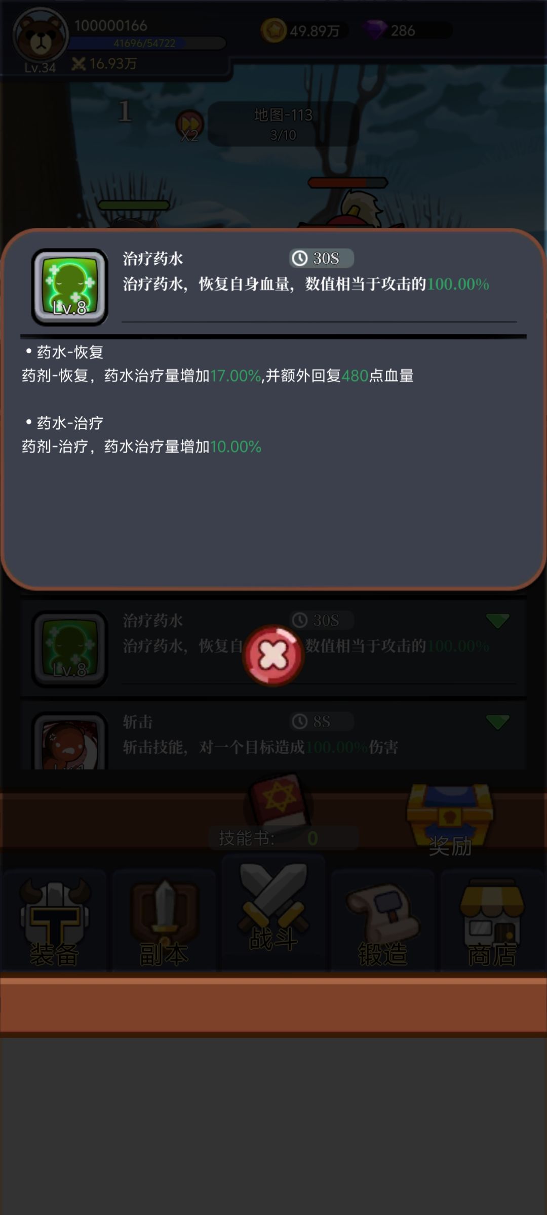 目前属于新游戏刚开服,各种技能都属于未成熟,开荒阶段,个人建议是只升级治疗药水这个技能