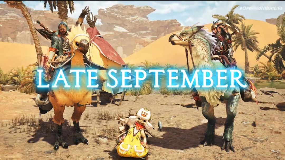 在今日的科隆游戏展开幕夜首秀(Opening Night Live)上,卡普空宣布《怪物猎人:荒野》将联动《最终幻想14》,联动内容将于2025年9月下旬的“第3次免费游戏更新”上线!
