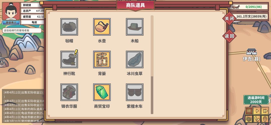 落地长安府,临洮天水南郑顺着做任务,0年10月份左右到镇里招人开村商会,为了尽早上学者,戴上卡的商书 把马车换成6级牛车做南郑的木耳任务,一年四五月攒到30多万拿商贸带满苹果去西南府,路过成都府的时候换个10级牛车