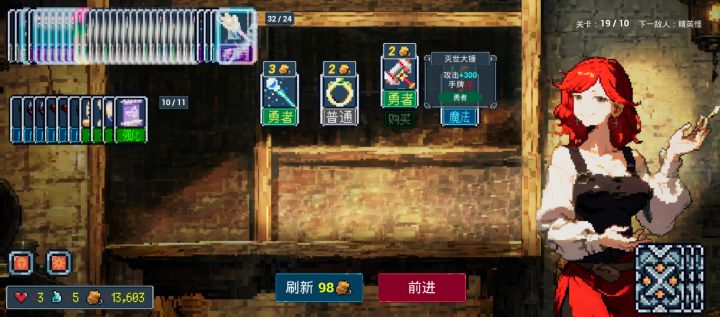 复制、回响法杖:战斗前,复制那些进入战斗时获得增益的装备,进入战斗时,再将复制法杖复制那些提升强度的装备(注意挪动法杖次序,复制倍率时尽量位置靠后,复制基础时位置靠前),当点击出战后,系统正式开始结算装备加成时,再挪动位置,让它去复制学者之衣之类的装备,在商店时,复制骑士护手,增加装备槽,填满后切过来,复制道具袋,增加道具槽。实现“一杖多用”