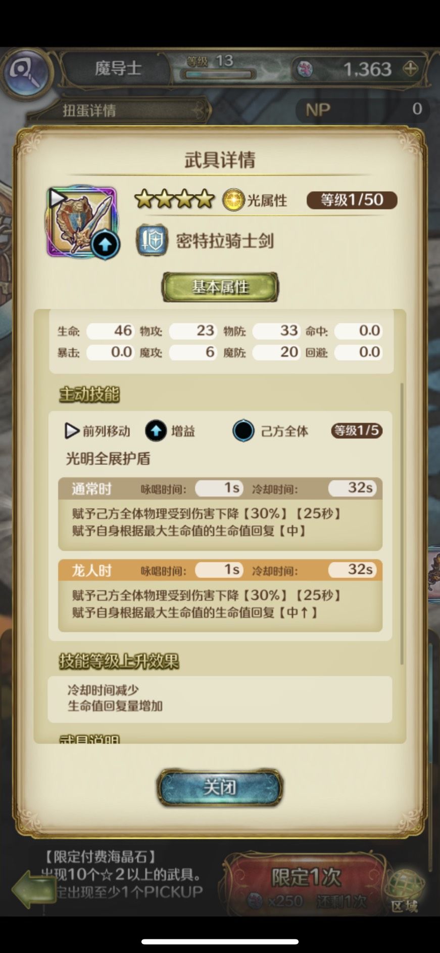 密特拉骑士剑:俗称密盾,能使我方物理伤害减免30%,可以被石盾延长状态时间,基本上开局放一次就行,血量低的时候可以配合龙人回血。搭配方盾可以使自身物理伤害减免80%。