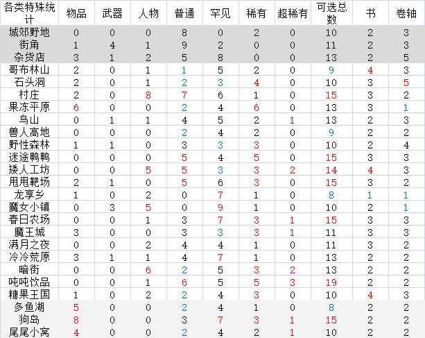 各地图可选项目统计