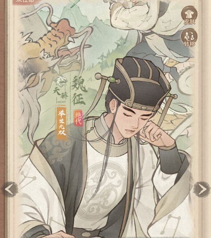魏征作为输出核心,选择4攻击百分比宝玉+4虎啸套装,通过攻击属性堆叠与暴击加成,确保爆发伤害最大化;