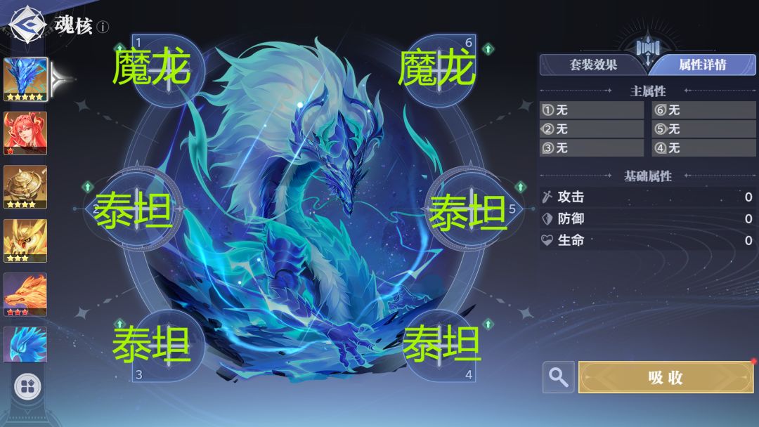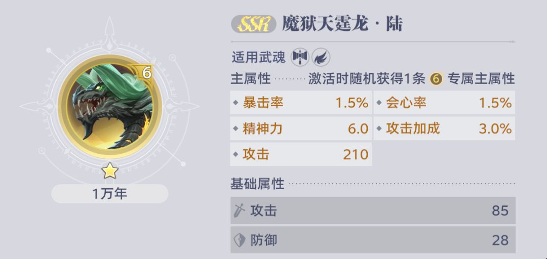 魂核争议说明:雷龙这里争议最多的是到底带泰坦还是渡鸦的问题,我给大家说明一下,看雷龙的魂技和奥义所有的描述都是提升会心伤害,所以雷龙必须是无脑堆会心,泰坦的自身的属性就是增加会心,魂核泰坦升星后可以选会心属性。