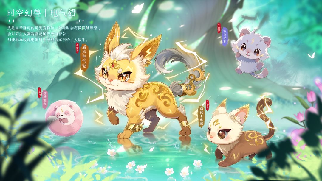 1、新增天命资质时空幻兽:电气貂,在战斗中通过时空之临同时召唤出时空幻兽电气貂助战,电气貂会随着等级出现外貌变化