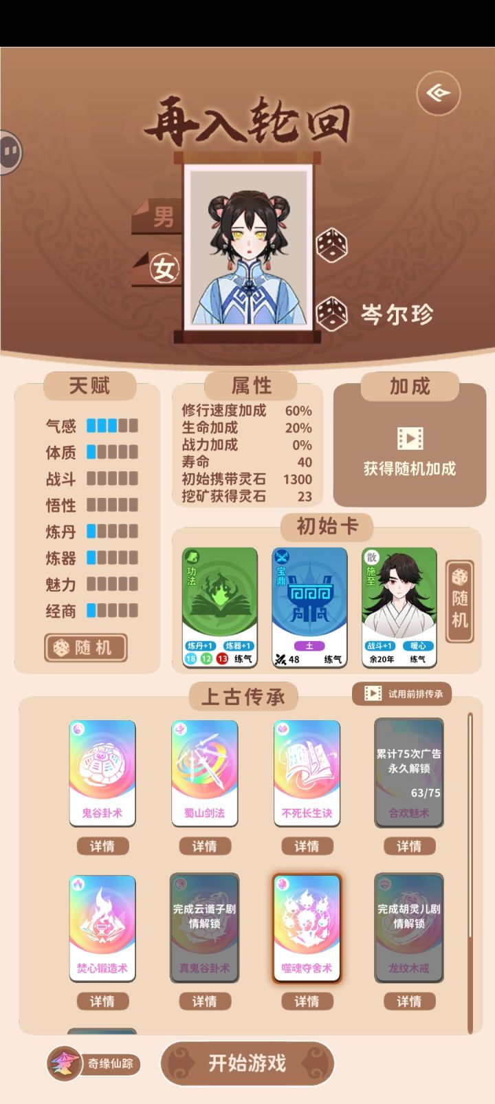 图二是开始一世前的属性等(头像、名字等有骰子的可以点随机,无限制要求)