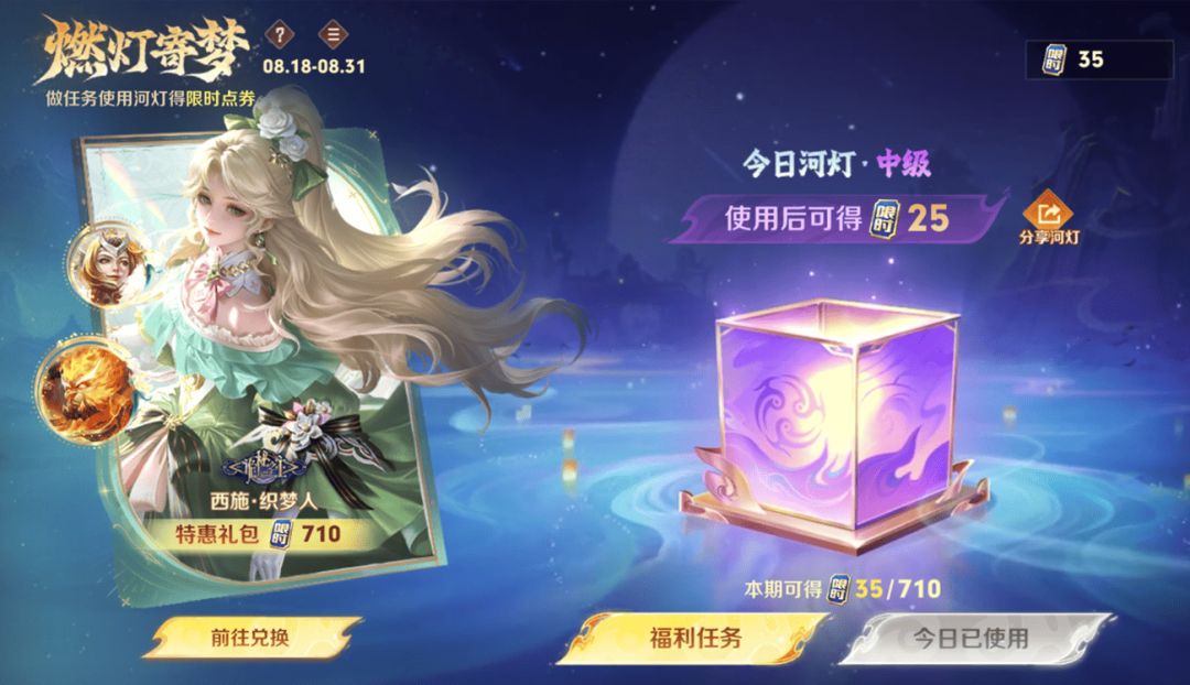 如果对织梦人有需求,那肯定第一时间兑换就好,这也是限时点券商城的第1种可以选择的奖励,花710限时点券秒换织梦人,然后再看后面的情况兑换其他奖励,那如果平时不玩西施,或者有游龙清影,不需要织梦人的小伙伴就不要兑换了,不然也是压箱底落灰,那这类小伙伴该如何选择呢?