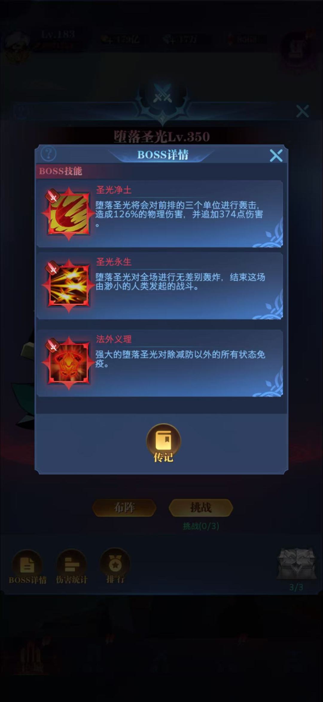 上述为法免Boss的打法,来到物免Boss。有些同学可能会觉得龙骑、龙王啥的没有用,得上一堆法师才有输出,这个观点在比较低的转数是对的,但是到了高转情况会产生变化,因为物免Boss的物免是一个隐藏Buff,可以被祭祀或者恶堕给偷走一半,这下就只有50%的物免了,在这种情况下,如果你的主C自身输出足够高,是能够破防并对其造成有效输出,所以高转龙骑队在物免Boss仍然能够接着用,具体阵容参考法免Boss。