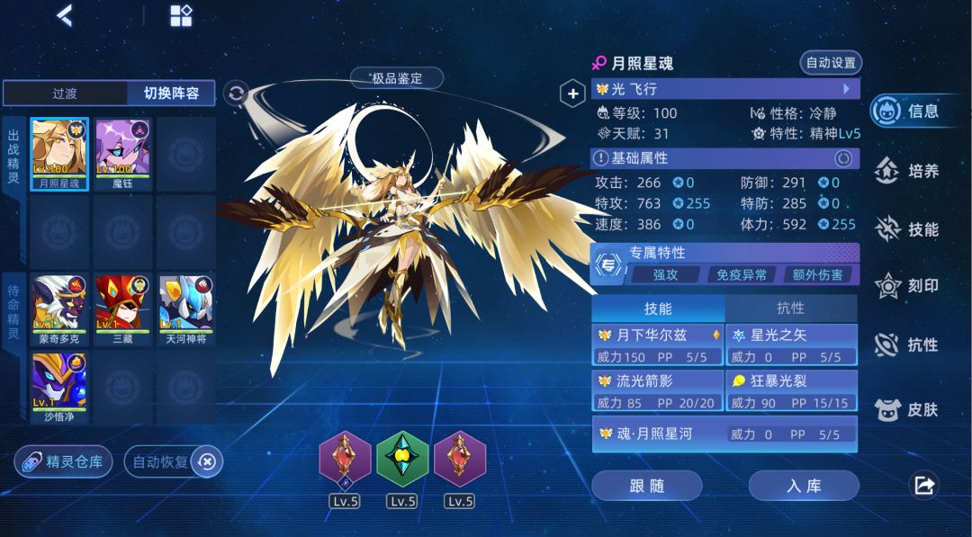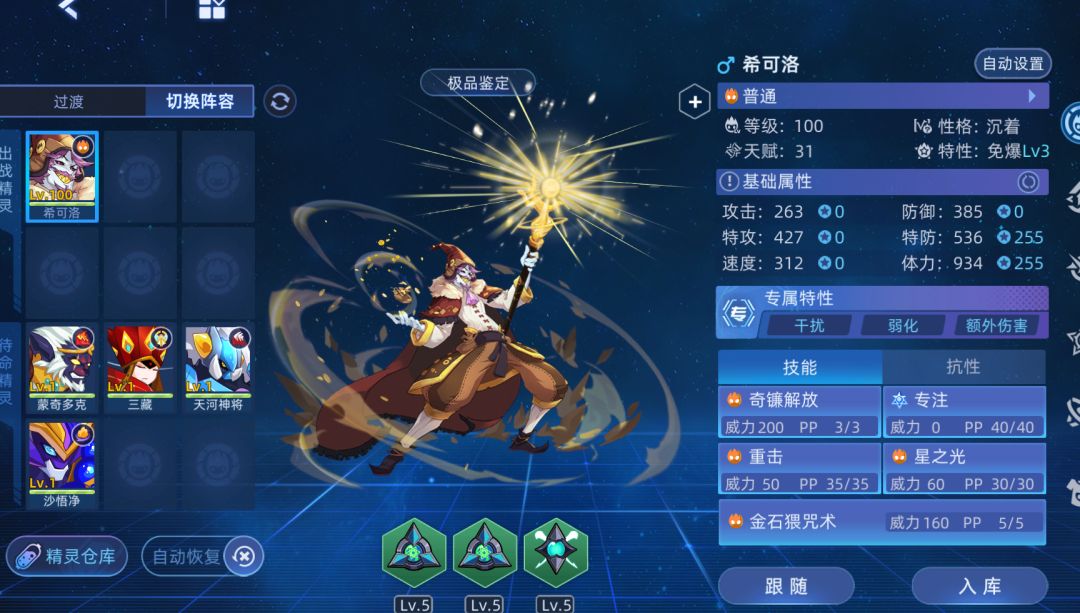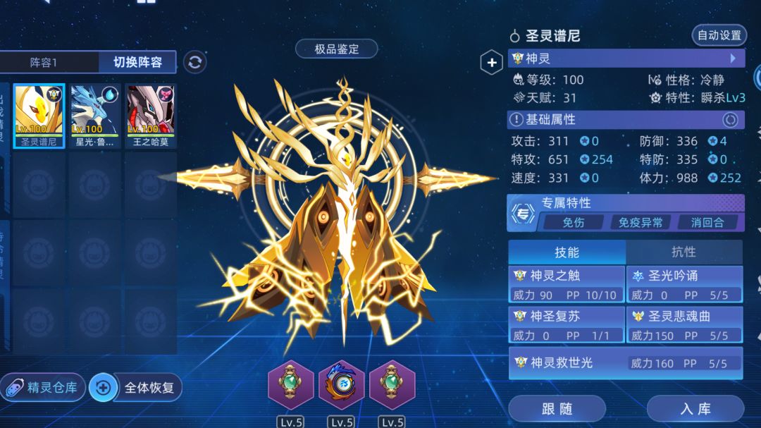 打法(紫火or不借火):送5个被邪灵属性4倍克制的一级精灵,再上圣谱(攻体)神圣复苏攒进度,之后第五和封属150交替