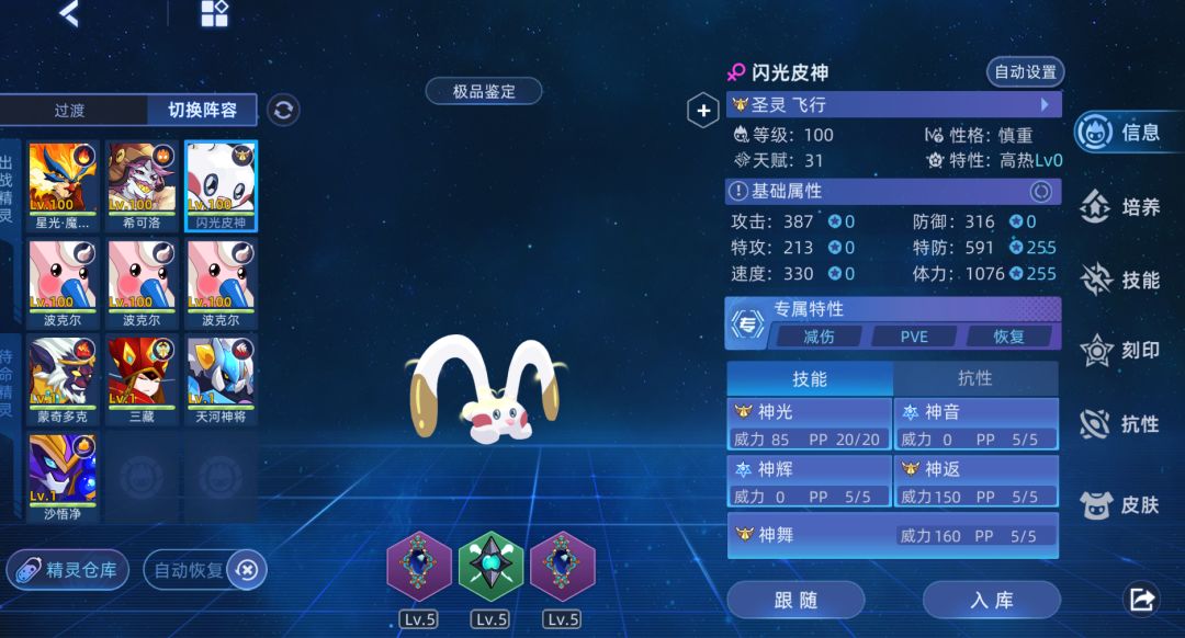 之后上闪光皮神(特防体+双减珠)偶数回合打第五,奇数回合点神音(boss开了强化就用神光消强)