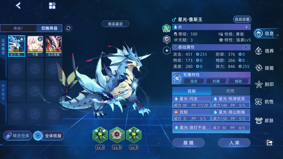 所需精灵:王之哈莫,千裳,闪光皮神,3只波克尔