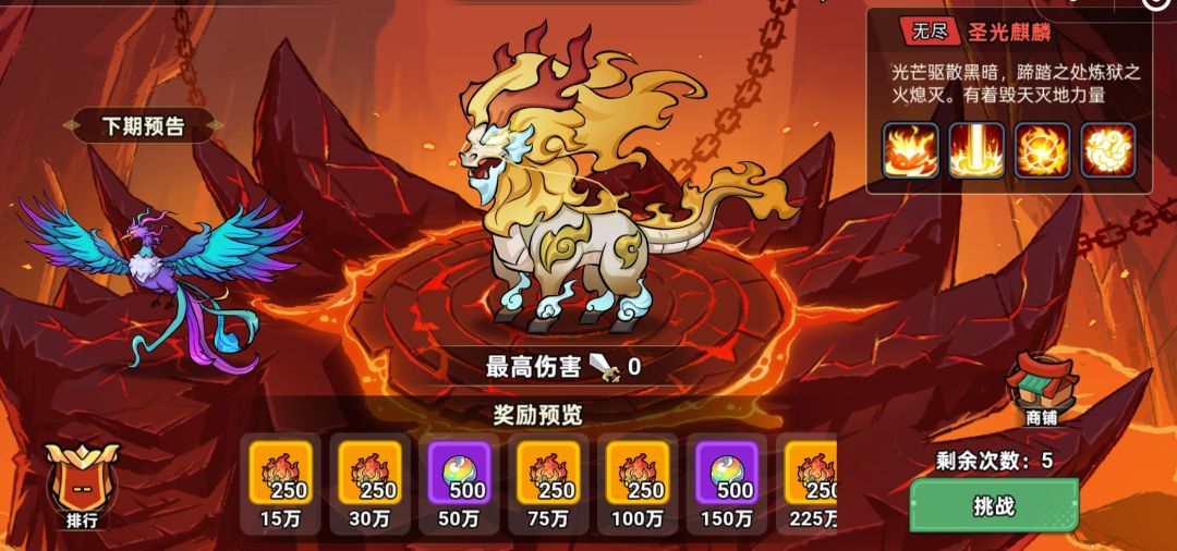 1.1其实可以看作为跨区BOSS,在游历-赤炎炼狱中的玩法,一共有3个BOSS,远古玄武、暗月朱雀、圣光麒麟。
